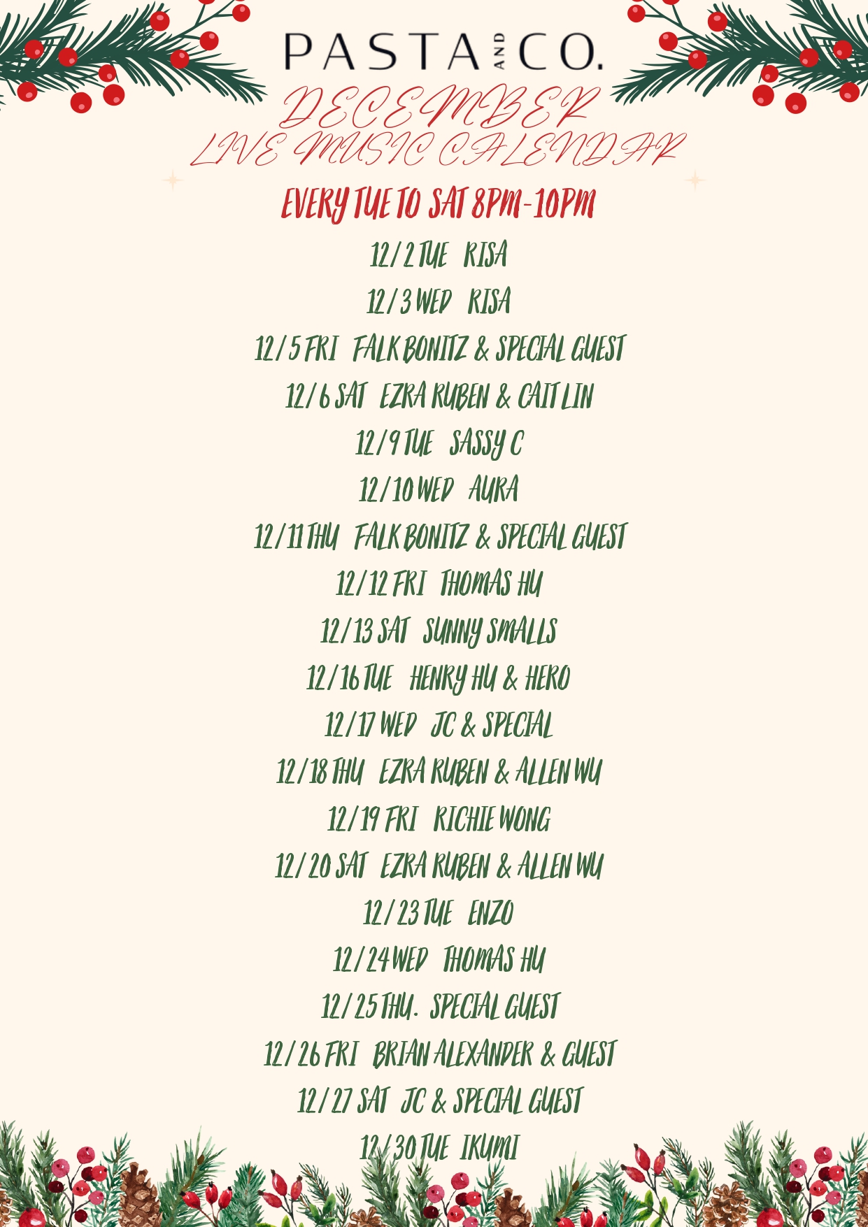 Pasta & Co. 我們重新開幕了,全新的座位安排,酒吧,配合現場爵士音樂舞台您可以近距離體驗 Timothy 的美味全新秋季佳餚!