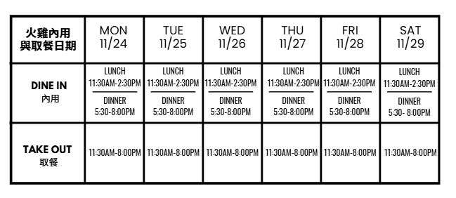 選擇外帶時間為11:30AM-2:30PM者,請於結帳備註拿取時間